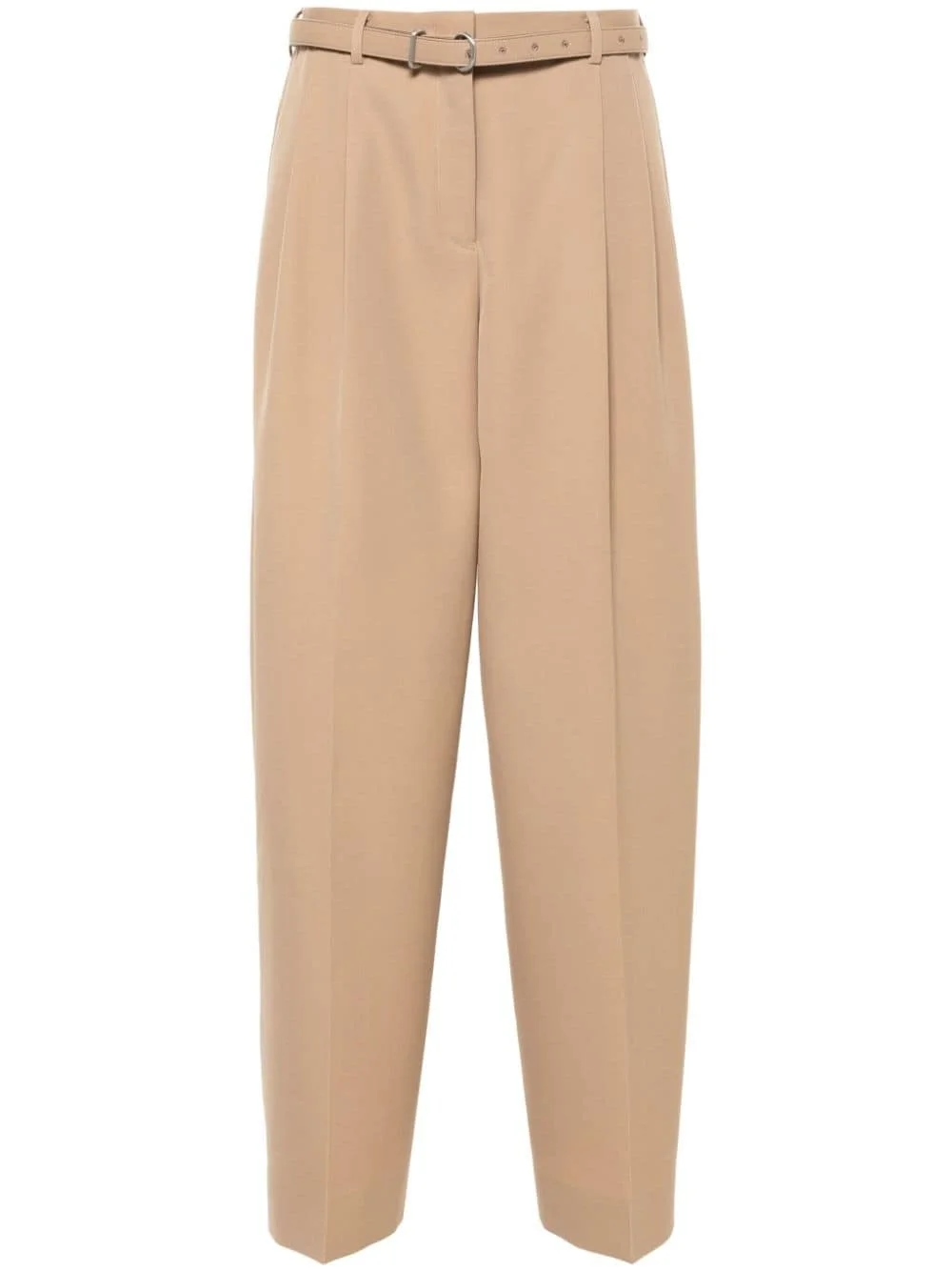 belted trousers Highlights - Light brown - Wool - Gabardine weave - Detachable waist belt - Concealed front button, hook and zip fastening - Belt loops - Two diagonal pockets to the sides - Pleat detailing - Pressed crease - Two rear welt pockets - Wide leg Made in Italy Composition Lining: Cotton 100% Outer: Calf Leather 100%, Wool 100% SIZE & FIT Model measurements Height 5 ft 11 in(1.8 m) Bust/Chest 32.67 in(83 cm) Hips 35.82 in(91 cm) Waist 25.98 in(66 cm) FittingInformation Designed with a wide-leg cut, these trousers allow for a close fit at the waist and offer a loose and roomy fit over the leg The belt offers adjustability for fitted preferences Made from a midweight non-stretch fabric Measurement FRONT RISE 11.81 in(30 cm) INSIDE LEG 31.49 in(80 cm) BACK RISE 16.53 in(42 cm) HIPS 38.58 in(98 cm) Hem Width 11.02 in(28 cm) LENGTH 42.91 in(109 cm) WAIST 28.34 in(72 cm)
