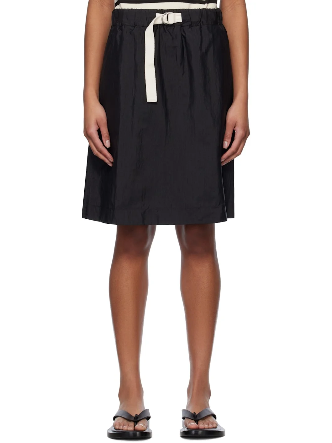 Nylon- and silk-blend taffeta midi skirt. · Integrated cinch belt at elasticized waistband · Two-pocket styling · Embroidered logo patch at hem · Fully lined Supplier color: Black 64% polyamide, 36% silk. Made in Italy 251249F092006