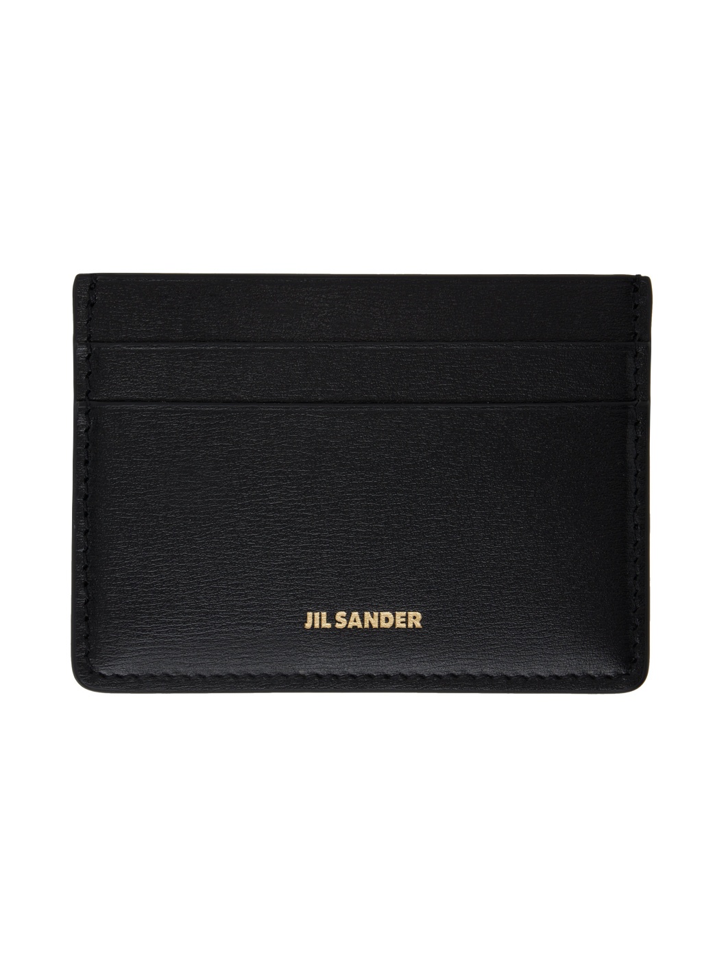 Buffed calfskin card holder in black. · Logo stamp at face · Four card slots · Central note slot · Nappa sheepskin lining · H2.75" x W4" Supplier color: Black