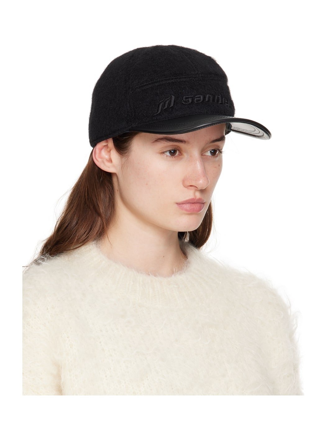 Felted knit wool- and mohair-blend cap in black. · Paneled construction · Grained leather trim throughout · Logo embroidered at face · Curved brim · Cinch fastening at back face Supplier color: Black