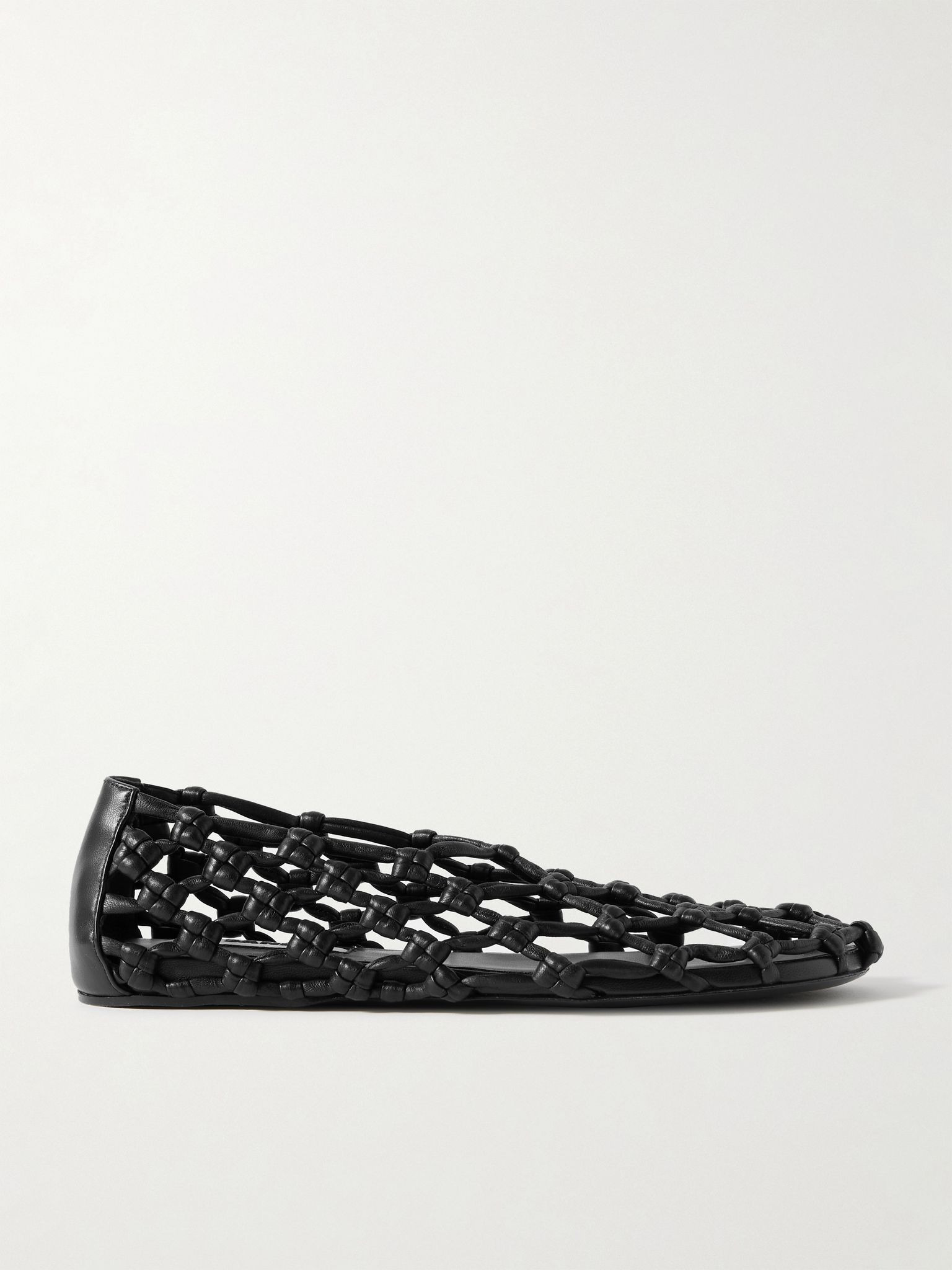 Jil Sander's minimal yet modern shoes always feel so elevated and chic. These ballet flats are made from strips of soft leather that are neatly knotted to create an open, cage-like construction. Wear yours with anything from dresses to tailoring. Small to size. See Size & Fit notes. Details & Care - Slight heel - Black leather (Sheep) - Slip on