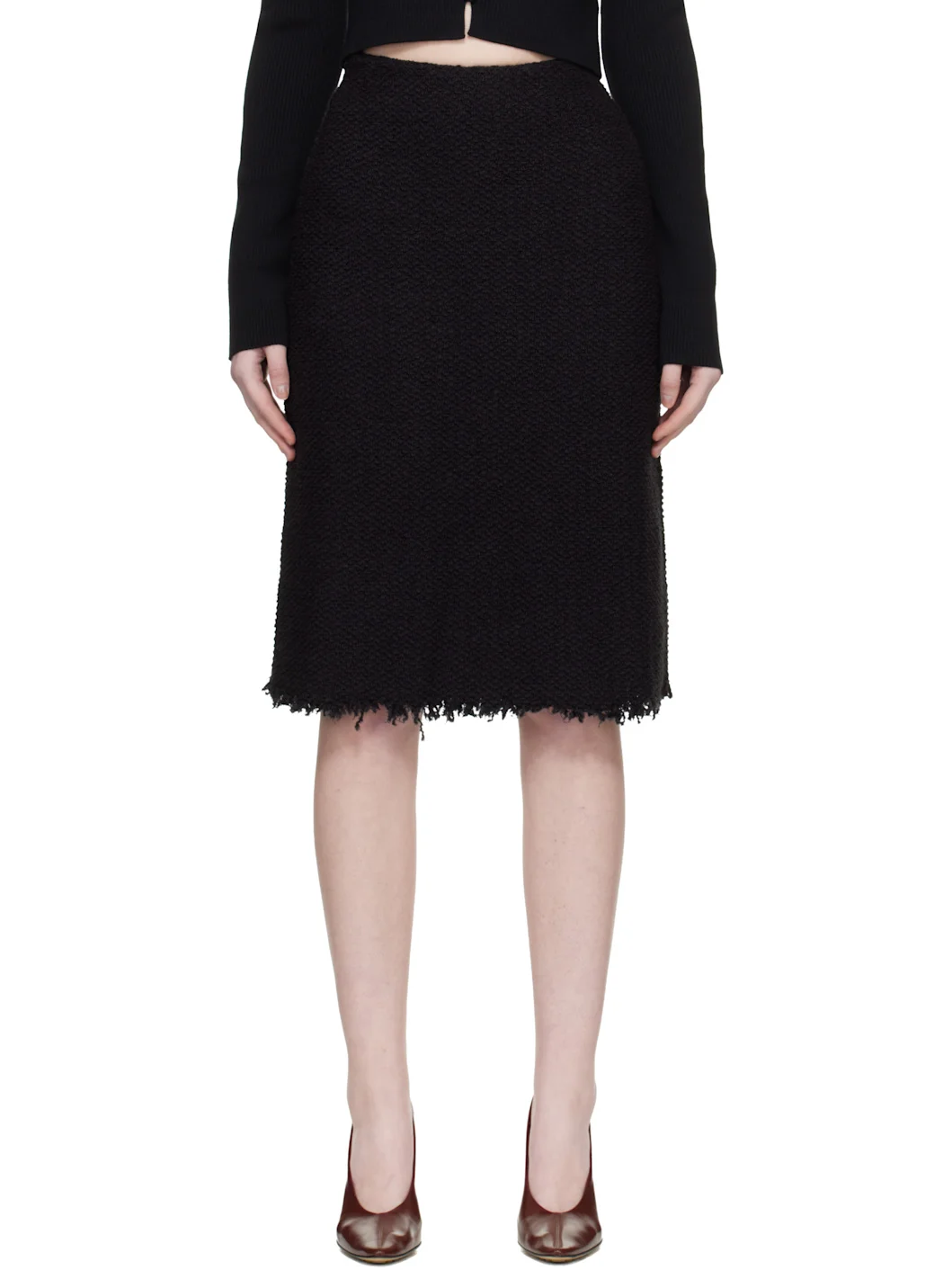 Viscose- and cotton-blend boucle midi skirt. · Frayed edge at hem · Concealed zip closure at side seam Supplier color: Black 48% visocse, 46% cotton, 6% polyamide. Made in Italy 261249F092000
