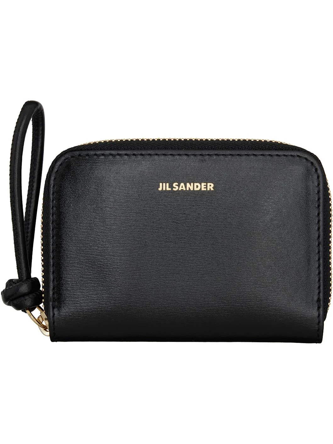 Buffed calfskin coin pouch. · Logo stamp at face · Knotted zip-pull at zip closure · Two-compartment interior · Card slot at interior · Nappa calfskin lining · H3" x W4" x D0.75" Supplier color: Black Calfskin. Made in Italy 252249F038003