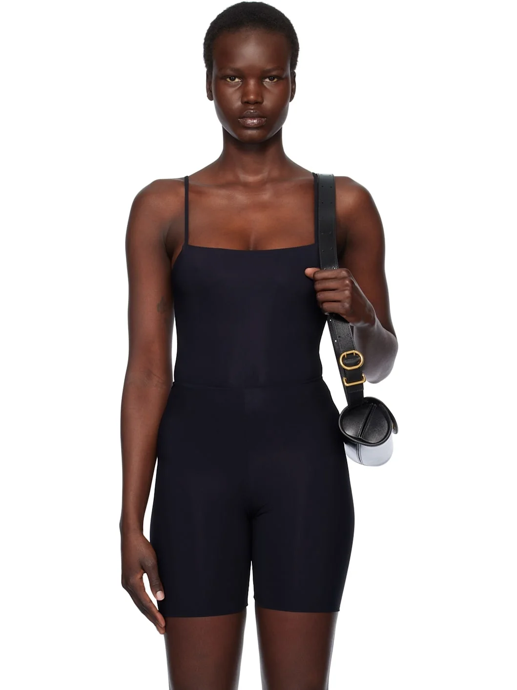 Stretch nylon jersey bodysuit. · Scoop neck · Press-stud fastening at bottom · Fixed shoulder straps Supplier color: Black 74% polyamide, 26% elastane. Made in Italy 251249F358000