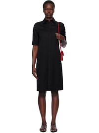 Black Lightweight Wool Gabardine Midi Dress