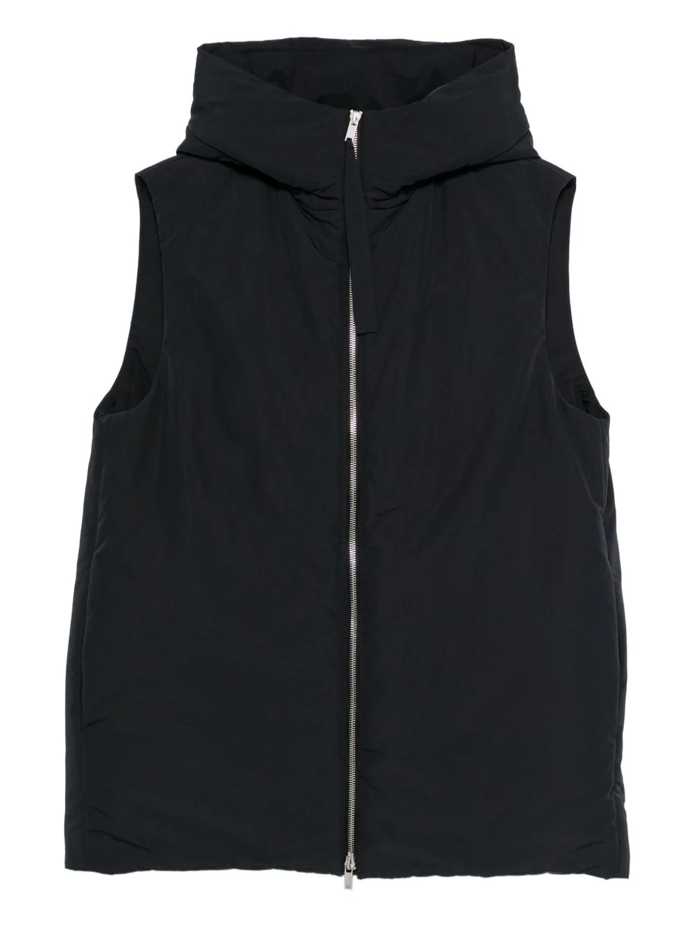hooded zip-front vest Highlights - Black - High collar - Zip fastening - Sleeveless - Padded Imported Composition Fabric 100% Washing instructions Read Manufacturer Guidelines
