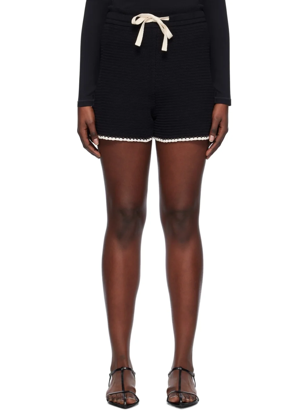 Knit cotton shorts. · Drawstring at elasticized waistband · Embroidered detailing at cuffs · Contrast stitching in white and brown Supplier color: Black 100% cotton. Made in Italy 241249F088002