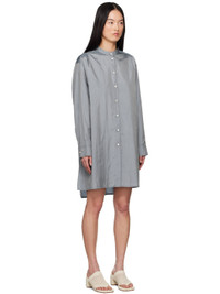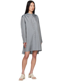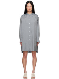 Nylon- and silk-blend canvas minidress. · Band collar · Button closure · Droptail hem · Dropped shoulders · Single-button barrel cuffs · Locker loop at back collar · Twin pleats at yoke · Logo patch at back hem Supplier color: Pewter blue 64% polyamide, 36% silk. Made in Italy 251249F109013