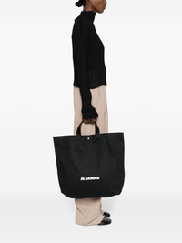 Book canvas tote bag Showing Jil Sander's focus on clean minimal styles, the Book tote bag has an all-black design enhanced with the brand's logo at the front. It’s crafted from a linen-cotton blend and anchored with two leather top handles. Highlights - Black - Cotton-linen blend - Canvas - Logo print to the front - Press-stud fastening - Two leather top handles - Main compartment - Three internal slip pockets - Debossed internal logo - Unlined - This piece comes complete with a protective dust bag. Made in Italy Composition Outer: Calf Leather 100%, Cotton 70%, Linen/Flax 30% SIZE & FIT Model measurements Height 5 ft 10 in(1.78 m) Bust/Chest 31.49 in(80 cm) Hips 37 in(94 cm) Waist 23.62 in(60 cm) Measurement DEPTH 3.93 in(10 cm) HANDLE 4.72 in(12 cm) HEIGHT 18.5 in(47 cm) WIDTH 20.47 in(52 cm)