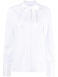 bow-detailing cotton shirt Highlights - Optical white - Cotton - Bow detailing - Band collar - Front button fastening - Long sleeves - Buttoned cuffs - Straight hem Made in Italy Composition Cotton 100% SIZE & FIT Model measurements Height 5 ft 10 in(1.78 m) Bust/Chest 30.7 in(78 cm) Hips 34.64 in(88 cm) Waist 23.22 in(59 cm) FittingInformation Designed to be unstructured, offering a loose fit throughout Made from a midweight non-stretch fabric This piece fits true to size – take your usual size
