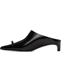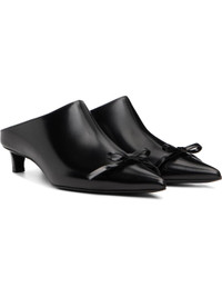 Polished leather slip-on heels. · Pointed toe · Bow accent at vamp · Buffed leather lining · Kitten heel with rubber injection · Leather sole · Heel: H1.5" Supplier color: Black Upper: leather. Sole: leather, rubber. Made in Italy 252249F122011