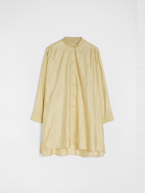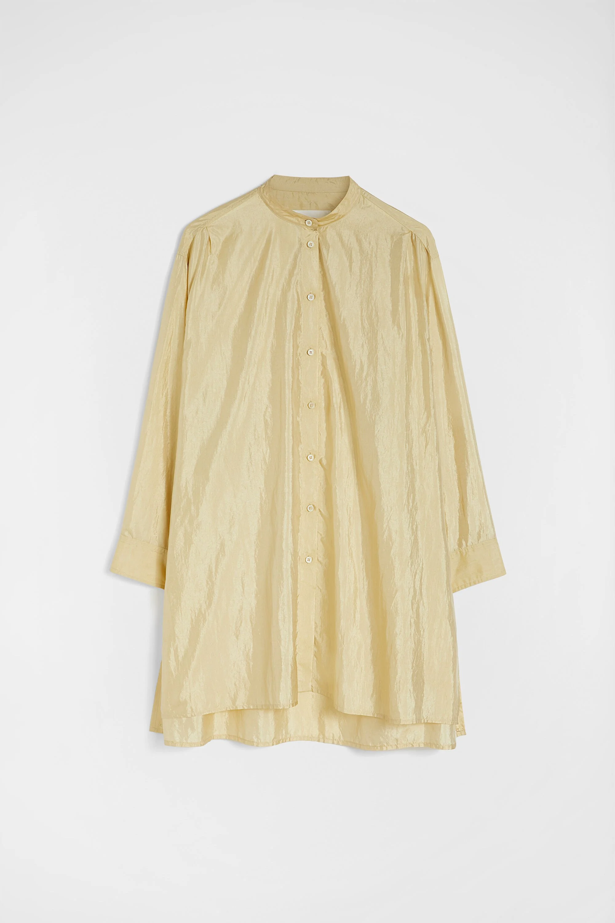 Long silk and nylon canvas shirt with small stand collar Details - regular and long fit - dropped shoulders - small stand collar - centre-front button closure - Jil Sander+ logo printed on back label - side slits - silk and nylon canvas - 64% polyamide-nylon 36% silk - made in Italy - StyleID: J40DL0159J70003265 Care - dry clean only - iron with care Fit - model is 177cm/5'9" and is wearing a size 34 DE - Please note that the physical label of the item will show the German size