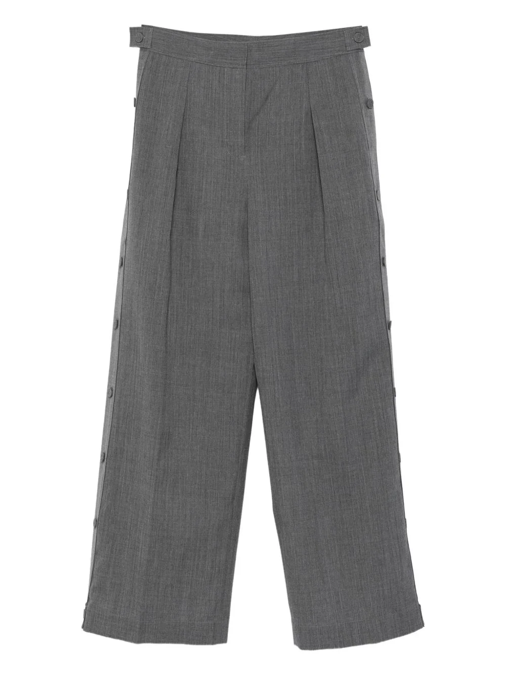 buttoned trousers Highlights - Charcoal grey - Side button fastening - Two rear patch pockets - Pressed crease - Pleat detailing Made in Italy Composition Lining: Viscose 100% Outer: Wool 100% SIZE & FIT Model measurements Height 5 ft 10 in(1.78 m) Bust/Chest 33.85 in(86 cm) Hips 36.61 in(93 cm) Waist 26.77 in(68 cm) Washing instructions Dry Clean Only