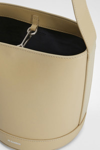 Leather bucket bag with adjustable shoulder strap and embossed Jil Sander logo Details - adjustable shoulder strap - Cannolo buckle - hook closure - integrated round coin purse with zip closure - nappa lining - embossed Jil Sander logo - 100% calf leather - made in Italy - StyleID: J07ZH0059P5355265