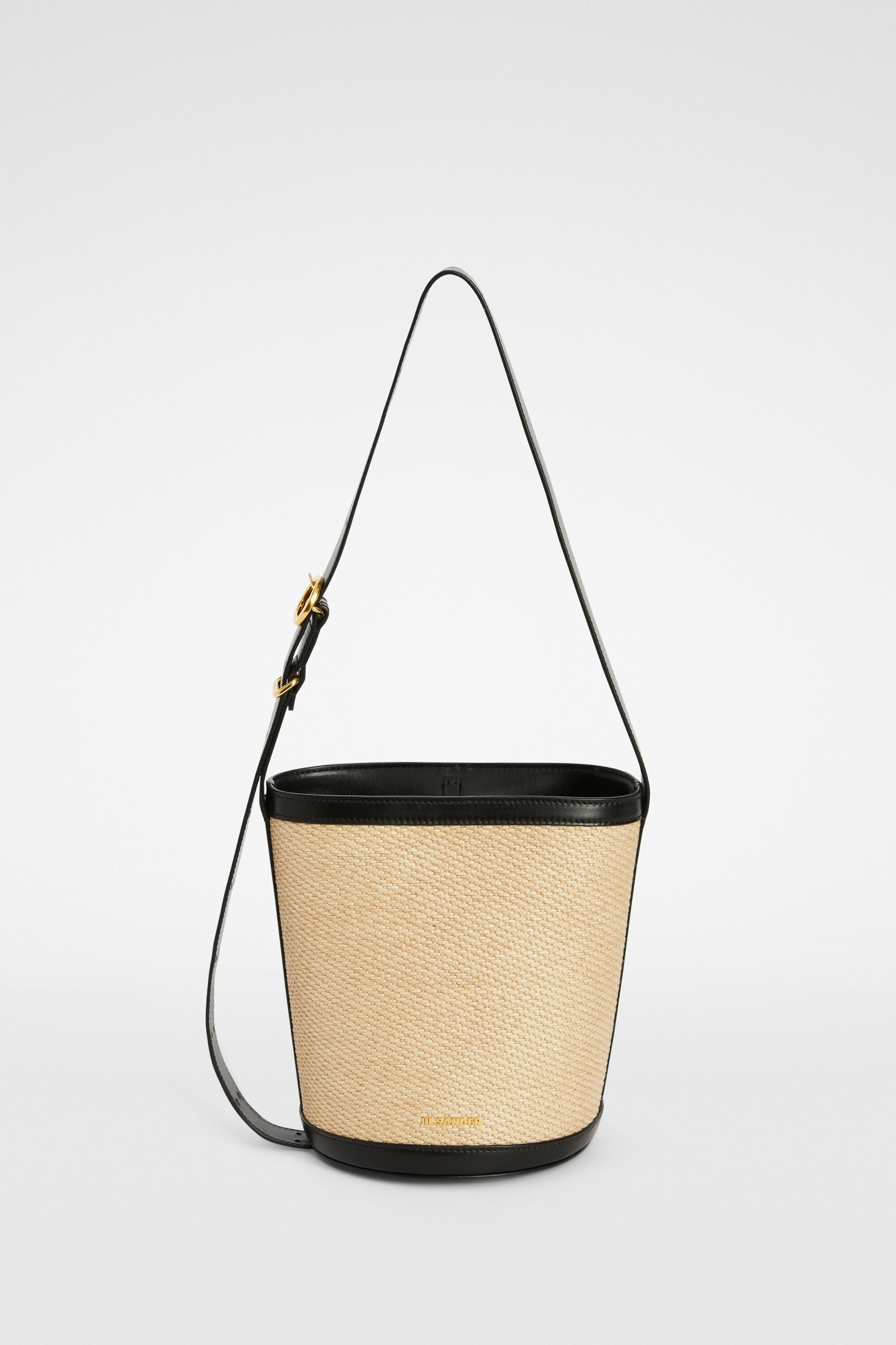Raffia bucket bag with adjustable shoulder strap, leather trims and metal Jil Sander logo Details - adjustable shoulder strap - Cannolo buckle - hook closure - integrated round coin purse with zip closure - calf leather trims - nappa lining - metal Jil Sander logo - 54% polyamide-nylon 23% cotton 23% linen - made in Italy - StyleID: J07ZH0059P8930280