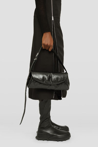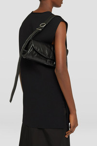 Padded leather handbag with adjustable strap and embossed Jil Sander logo Details - adjustable strap with buckle - magnetic button closure - silver-toned hardware - inner card slot - nappa lining - embossed Jil Sander logo - 100% calf leather - w 34 cm x h 12 cm x d 12 cm - made in Italy - StyleID: 8059695800985