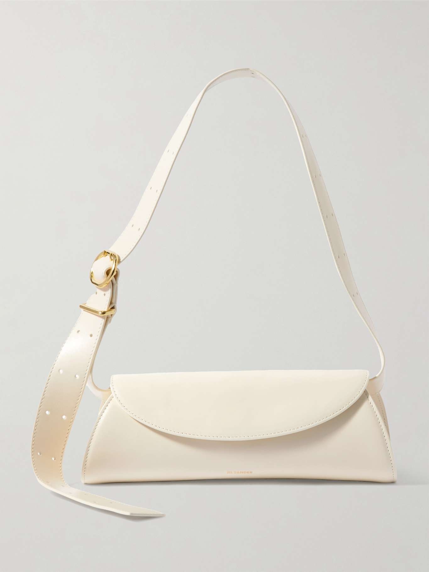 EDITORS'NOTES Jil Sander’s ‘Cannolo’ bag will slot nicely into your daily rotation thanks to its minimalist design and classic colorway. It’s crafted from leather and perfectly sized for the essentials, like your wallet, phone and keys. Remove the adjustable strap to carry it as a clutch. SIZE & FIT This item’s measurements are: - Height: 10cm / 3.9in - Width: 28cm / 11in - Depth: 10cm / 3.9in DETAILS & CARE - Off-white leather (Calf) - Adjustable leather shoulder strap - Internal card slot - Fully lined - Magnetic-fastening front flap - Comes with a dust bag