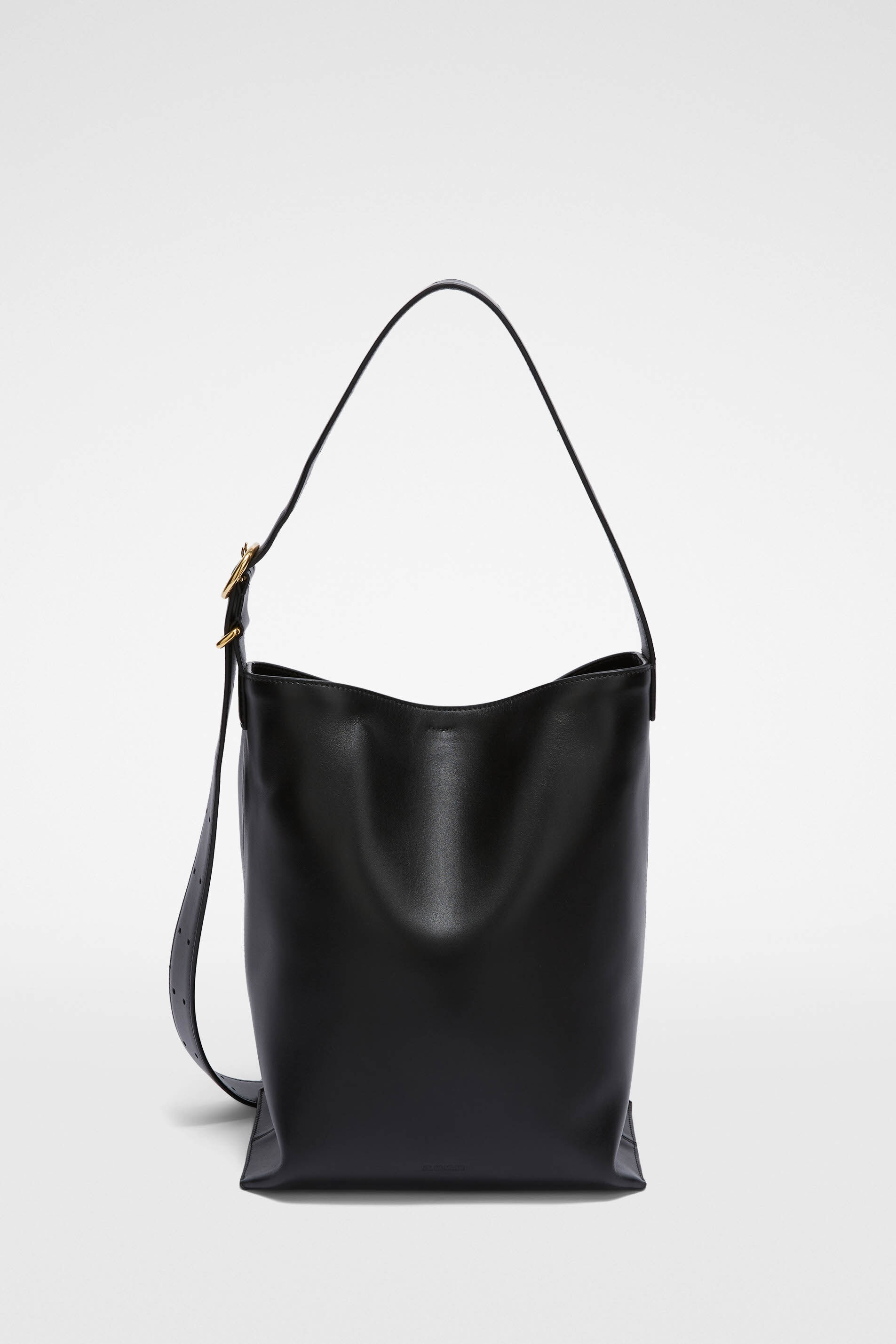 Leather tote bag with adjustable strap and embossed Jil Sander logo Details - adjustable leather strap - inner card slot - magnetic button closure - nappa lining - foil embossed Jil Sander logo - 100% calf leather - made in Italy - style ID: J07WD0063-P5373 Size and measurements - height : 30 cm - width : 8 cm - depth : 33 cm