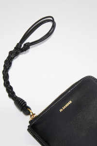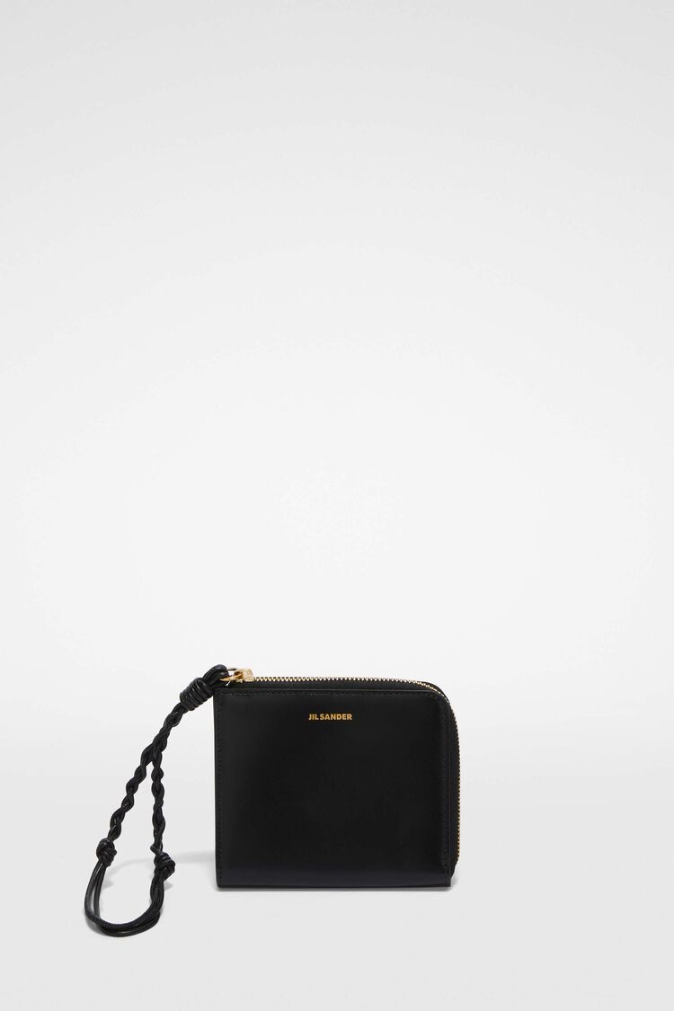 Zipped leather credit card purse with embossed Jil Sander logo Details - zip closure - three card slots - coin pocket - nappa lining - foil embossed Jil Sander logo - 100% calf leather - l 11,5 cm x h 11 cm x d 2 cm - made in Italy - StyleID: 8057763777290