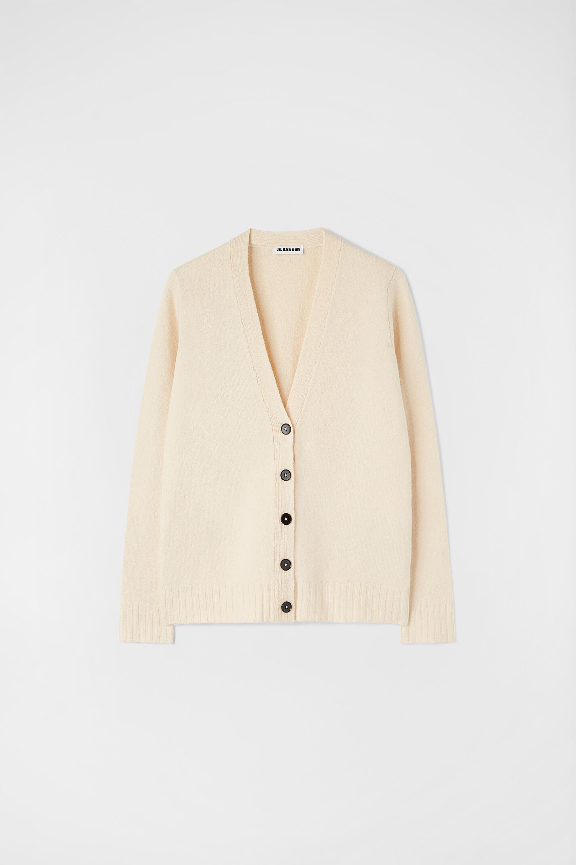 Long-sleeved merino wool cardigan Details - relaxed fit and boxy shape - v-neck and long sleeves - visible front button closure - dropped shoulders - ribbed neck, hem and cuffs - lightweight merino wool - 100% wool - made in Italy - StyleID: J02GP0055J14506109 Care - dry clean only Fit - model is 177cm/5'9" and is wearing a size 34 DE - Please note that the physical label of the item will show the German size