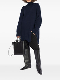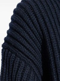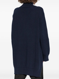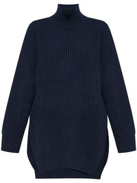 chunky-ribbed wool jumper Highlights - Midnight blue - Wool - Chunky ribbed knit - Roll neck - Long sleeves - Ribbed cuffs and hem - Side slits - High-low hem Made in Italy Composition Wool 100% SIZE & FIT FittingInformation Designed for an oversized fit, offering additional room throughout Made with a midweight knit, this piece offers some stretch This piece fits true to size – take your usual size
