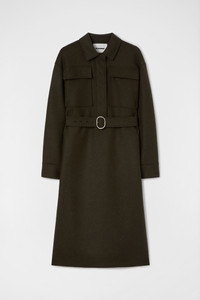 Long-sleeved wool dress with large patch pockets and detachable belt Details - oversized fit and dropped shoulders - pointed collar - hidden button closure at front - in-seam pockets - large patch pockets with flaps on chest - detachable belt with metal buckle - doubleface wool with cotton lining - 80% wool 20% polyamide-nylon - made in Italy - StyleID: J40CT0189J20212311 Care - dry clean only - iron with care Details - model is 177cm/5'9" and is wearing a size 34 DE - Please note that the physical label of the item will show the German size