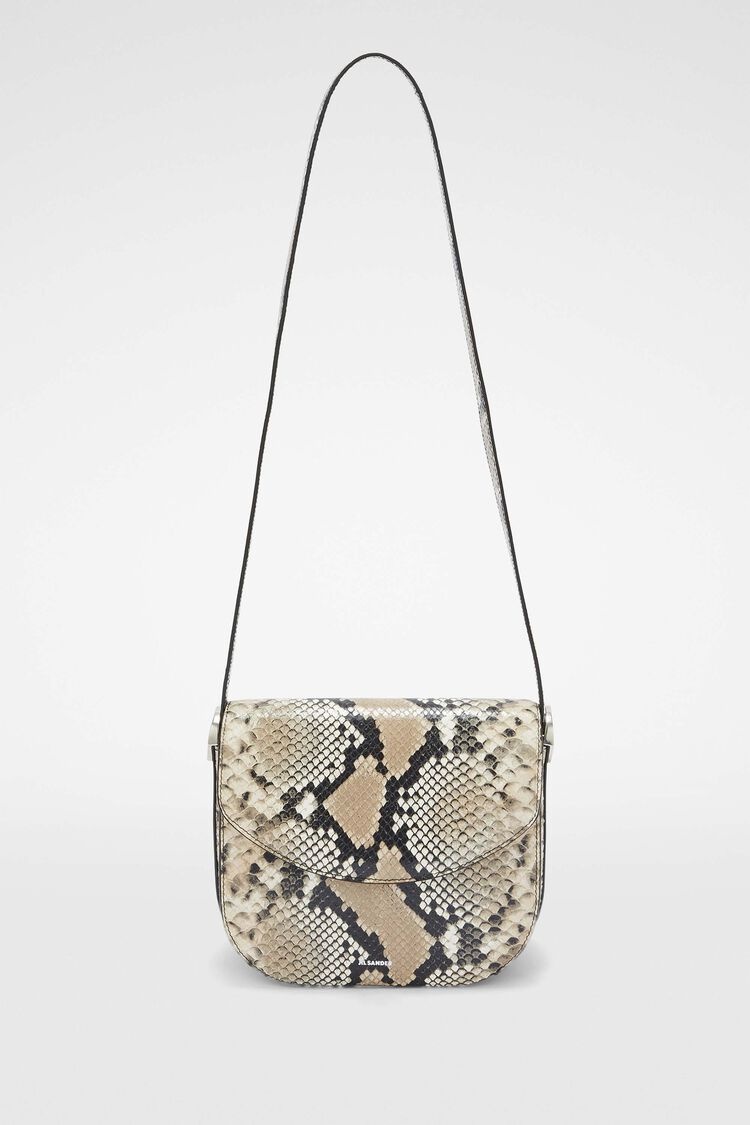 Medium-sized leather crossbody bag with gold metal coin detail and embossed Jil Sander logo Details - adjustable leather strap - two inner compartments - magnetic button closure - calf leather lining - embossed Jil Sander logo - snake print - 100% ovine leather - made in Italy - StyleID: 8050393303679