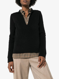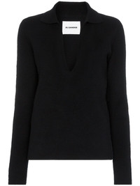 Collared v-neck knit jumper Keep close-knit with the garments that feel like a glove when you wear them. Jil Sander adds an elegant twist to the classic jumper with this black virgin wool collared v-neck knit jumper that is perfecting for teasing a view of the gorgeous layers you have hidden underneath with its plunging neck. A jumper you can stay cool in. Featuring a fine knit, an open collar, a relaxed fit and long sleeves. Made in Italy Composition Virgin Wool 100% SIZE & FIT Model measurements Height 5 ft 11 in(1.8 m) Bust/Chest 32.67 in(83 cm) Hips 35.82 in(91 cm) Waist 25.98 in(66 cm) FittingInformation This piece fits true to size. We recommend you get your regular size Cut for a relaxed fit Made with a mid-weight fabric Washing instructions Specialist Cleaning