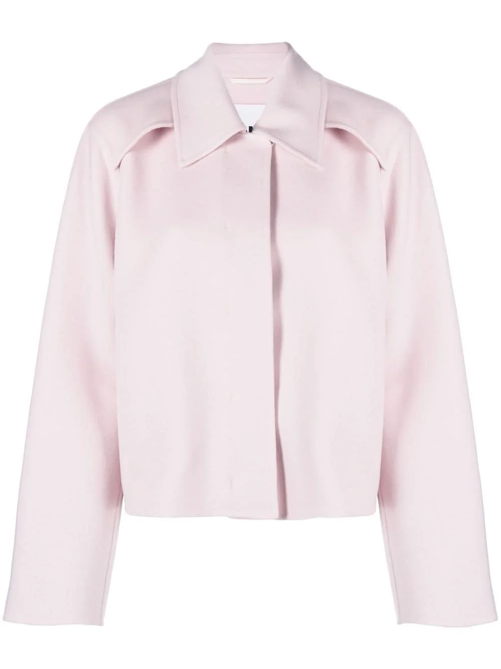 collared wool jacket Pastel shades are seen throughout Jil Sander's SS23 collection, showcasing a sweet side to the brand's understated and clean-cut aesthetic. This jacket is presented in a pink shade, tailored from wool with a minimalist boxy silhouette. Made in Italy Composition Wool 100% SIZE & FIT Model measurements Height 5 ft 12 in(1.82 m) Bust/Chest 34.25 in(87 cm) Hips 37.79 in(96 cm) Waist 25.19 in(64 cm) Washing instructions Dry Clean Only