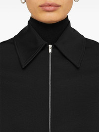 zip-up shirt jacket Highlights - Black - Jersey texture - Classic collar - Front zip fastening - Long sleeves - Two side slit pockets - Straight hem Made in Italy Composition Viscose 46%, Virgin Wool 40%, Polyamide 10%, Spandex/Elastane 4% Washing instructions Read Manufacturer Guidelines