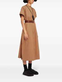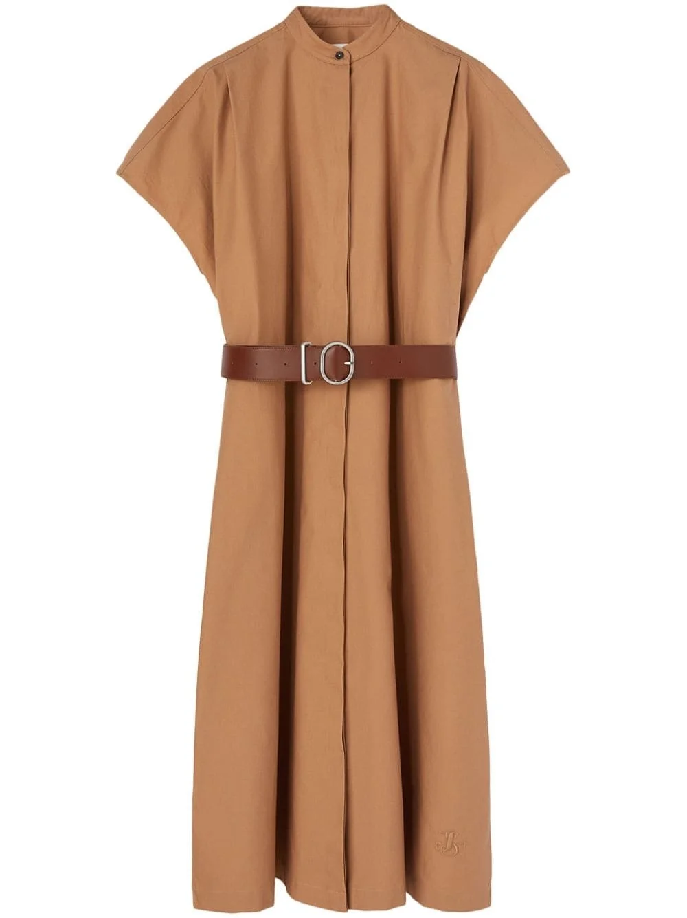 collarless belted shirt dress Highlights - Brown - Cotton - Side slits - Collarless - Front button fastening - Concealed front button fastening - Detachable and adjustable waist belt - Short sleeves - Two side slit pockets - Below-knee length - Flared hem Made in Italy Composition Cotton 100% SIZE & FIT FittingInformation This piece fits large – take one size down Measurement HIPS 62.2 in(158 cm) LENGTH 50.78 in(129 cm) WAIST 59.84 in(152 cm) BUST 61.41 in(156 cm)