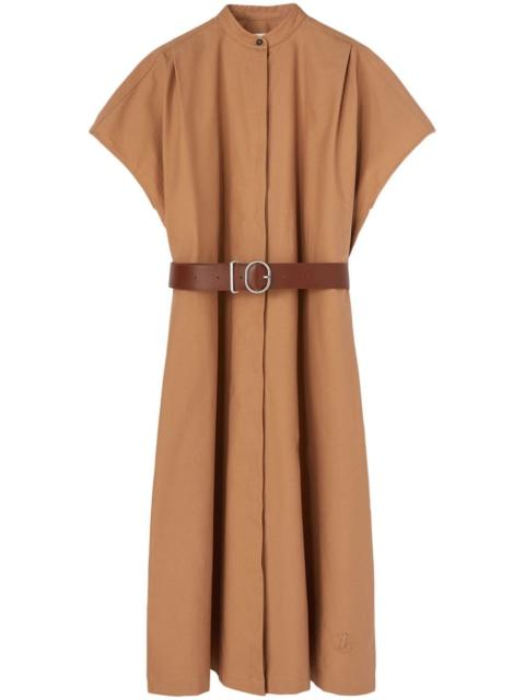 collarless belted shirt dress