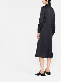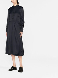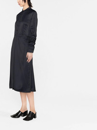 collarless midi dress Cut for a below-knee length, this long-sleeve midnight blue dress from Jil Sander is defined by its collarless silhouette and understated design evocative of the brand's approach to garments for AW22. Made in Italy Composition Viscose 100% SIZE & FIT Model measurements Height 5 ft 11 in(1.8 m) Bust/Chest 31.49 in(80 cm) Hips 35.43 in(90 cm) Waist 25.19 in(64 cm) Measurement HIPS 41.73 in(106 cm) LENGTH 44.48 in(113 cm) WAIST 29.92 in(76 cm) FittingInformation Designed to be unstructured, offering a loose fit throughout Made from a midweight non-stretch fabric This piece fits true to size – take your usual size Washing instructions Dry Clean Only