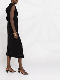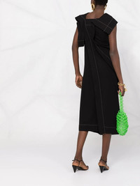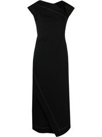 contrast stitching draped dress Style and comfort in equal measure. Jil Sander ensures no sacrifices are needed with this truly versatile, relaxed-fit draped midi dress. An essential in any modern woman's wardrobe. Made in Italy Composition Viscose 78%, Polyamide 16%, Spandex/Elastane 6% SIZE & FIT Model measurements Height 5 ft 11 in(1.8 m) Bust/Chest 32.67 in(83 cm) Hips 36.22 in(92 cm) Waist 24.4 in(62 cm) FittingInformation This piece fits true to size. We recommend you get your regular size Designed for a close fit at the bust, waist and hips Made with a mid-weight stretch fabric Washing instructions Dry Clean Only