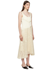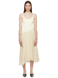 Acetate-blend satin dress. Cotton-blend lace embroidery throughout. · Paneled construction · Scoop neck · Frayed edge hem · Concealed zip closure at side seam · Fixed spaghetti straps · Full viscose twill lining Supplier color: Cornsilk Body: 74% acetate, 26% viscose. Trim: 90% cotton, 10% polyester. Lining: 100% viscose. Made in Italy 232249F054002