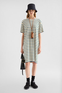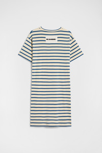 Short-sleeved ribbed cotton jersey dress with stripes and Jil Sander+ logo label stitched at back Details - oversized fit and knee length - dropped shoulders - ribbed crew neck - ribbed cotton jersey - 100% cotton - made in Italy - StyleID: J40CT0231J46497109 Care - dry clean only - iron with care Fit - model is 177cm/5'9" and is wearing a size S - Please note that the physical label of the item will show the international size