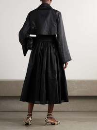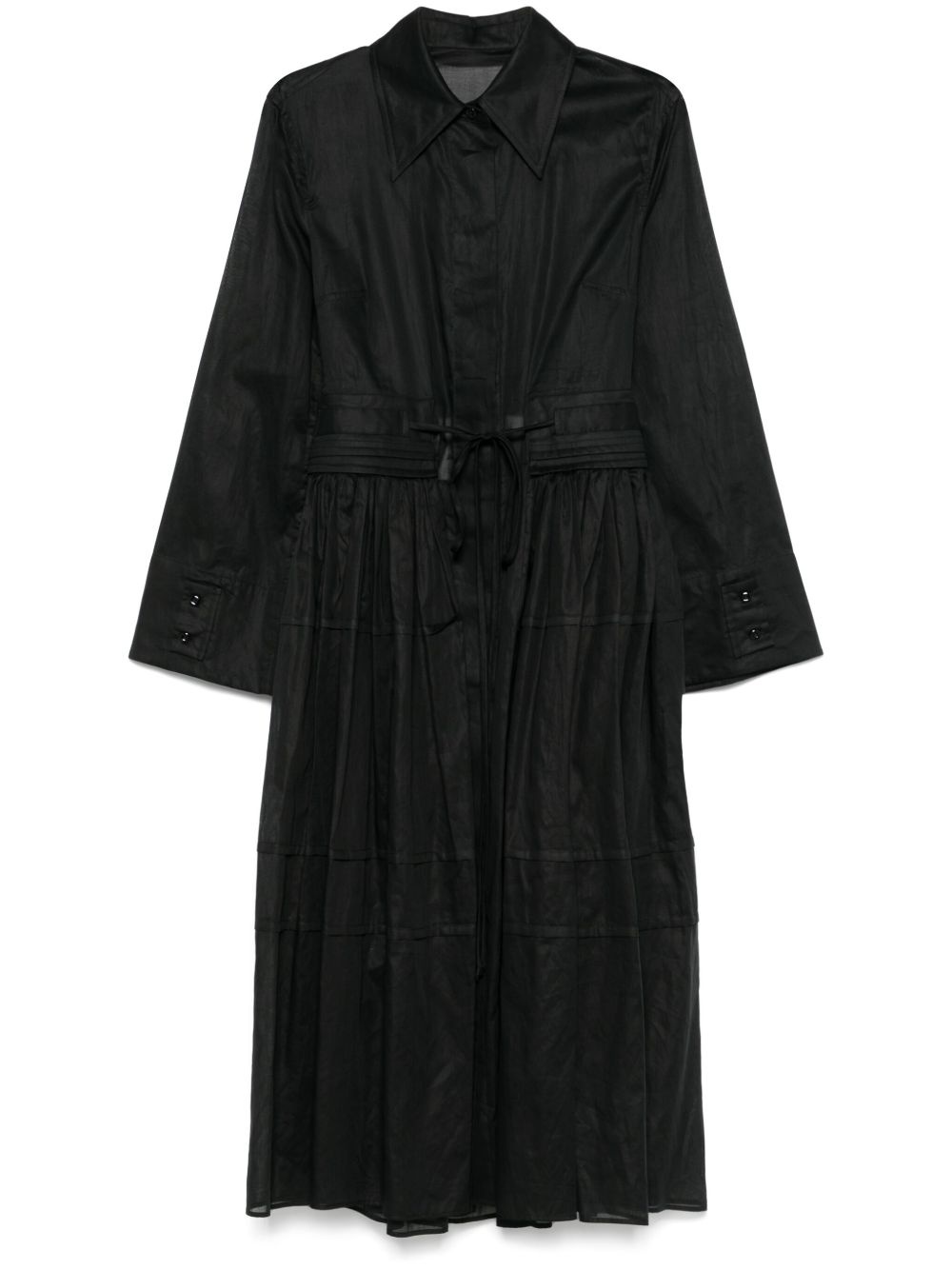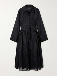 EDITORS'NOTES Jil Sander's shirt-style dress is designed with plenty of points of interesting, from the cape-effect back panel to the pintucks and gathers through the floaty, tiered skirt. It's made from cotton-poplin and has wide sleeves and ties at the waist to cinch the shape. The covered placket ensures a streamlined finish. SIZE & FIT Model measurements: - Fits true to size, take your normal size - Designed for a loose fit, use the adjustable drawstring to cinch in at the waist - Lightweight, non-stretchy fabric - Model is 177cm/ 5'10" and is wearing a FR 36 - Bust: 80cm/ 31.5" - Waist: 60cm/ 23.5" - Hip: 89cm/ 35" DETAILS & CARE - Black cotton-poplin - Partially concealed button fastenings through front - 100% cotton - Dry clean