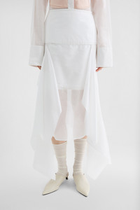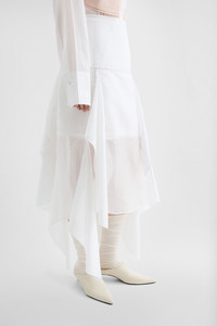 Cotton organdy muslin skirt with panelling Details - calf length and medium waist - side-seam zip closure - double cotton basque - cotton slip skirt - cotton organdy muslin - 100% cotton - made in Italy - StyleID: J01MA0163J45014100 Care - dry clean only - iron with care Fit - model is 177cm/5'9" and is wearing a size 34 DE - Please note that the physical label of the item will show the German size