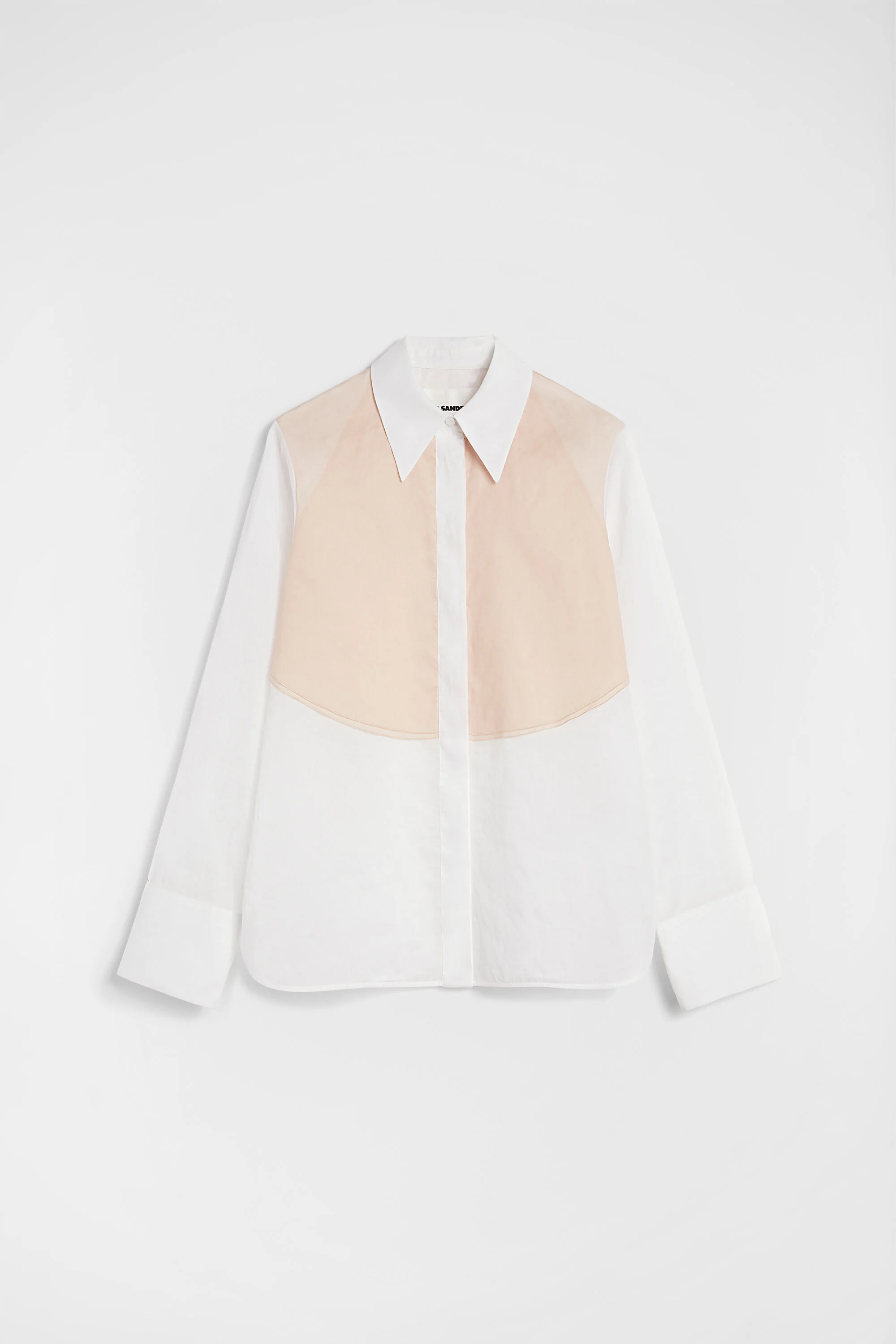 Long-sleeved cotton organdy muslin shirt with double-layer plastron in contrasting colour Details - slim and long fit - pointed collar - centre-front button closure - cotton organdy muslin - 100% cotton - made in Italy - StyleID: J01DL0170J45014100 Care - dry clean only - iron with care Fit - model is 177cm/5'9" and is wearing a size 34 DE - Please note that the physical label of the item will show the German size