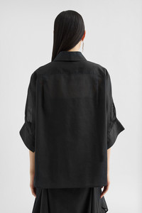 Cotton organdy muslin shirt with rounded and gathered short sleeves Details - oversized fit and boxy shape - dropped shoulders - classic collar - centre-front button closure - rounded and voluminous short sleeves with gatherings - inner button closure at cuffs - detachable slip top - cotton organdy muslin - 100% cotton - made in Italy - StyleID: J01DL0162J45014001 Care - dry clean only - iron with care Fit - model is 177cm/5'9" and is wearing a size 34 DE - Please note that the physical label of the item will show the German size