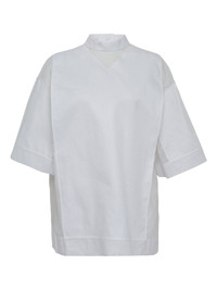 Organdy cotton top white short sleeves button fastening high neck boxy shape sheer panel Imported Composition Cotton 100% Washing instructions Read Manufacturer Guidelines
