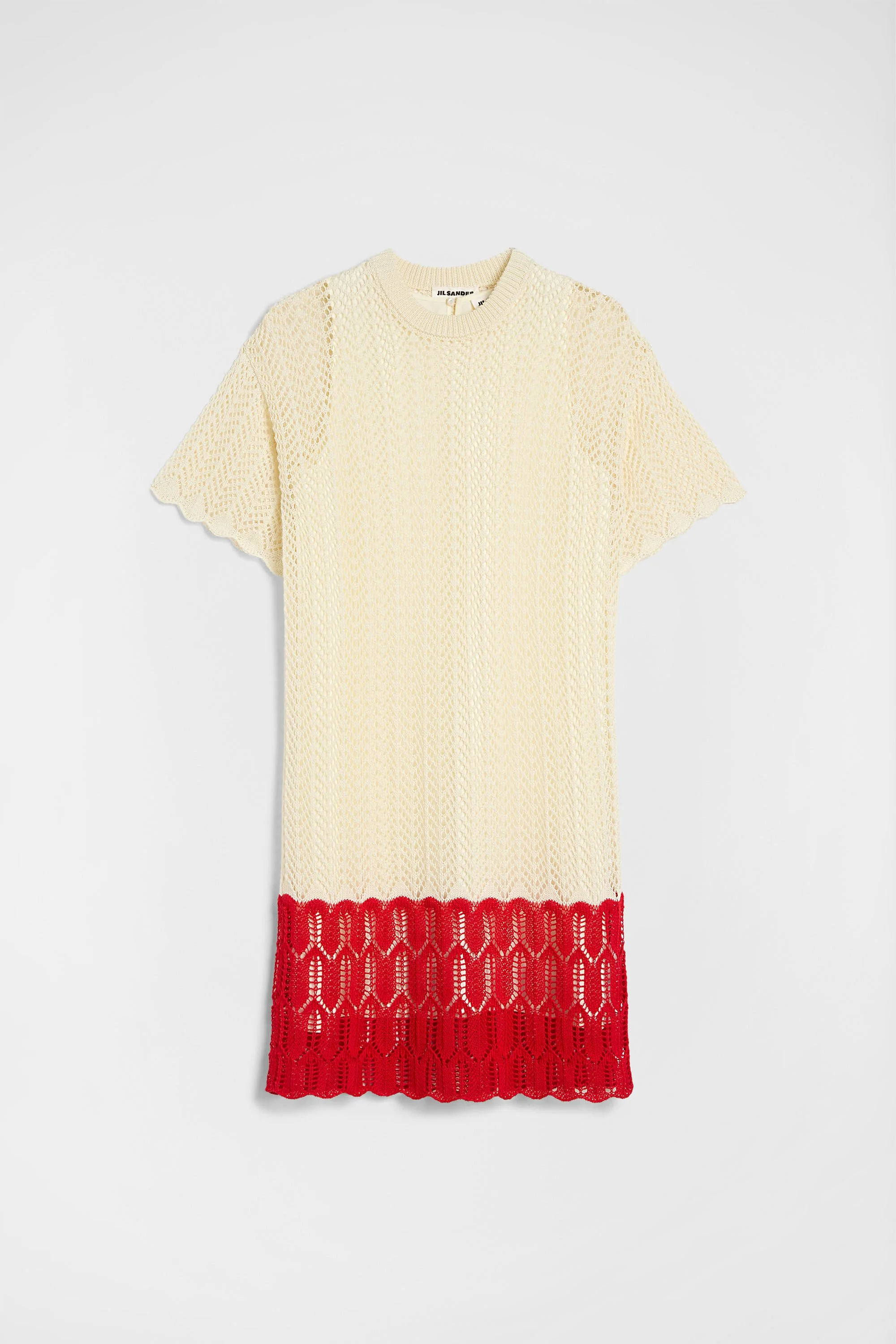 Short-sleeved cotton knitted dress with pointelle details and bottom in contrasting colour Details - relaxed fit and dropped shoulders - ribbed crew neck - viscose slip dress - fine-knit cotton with pointelle zig-zag details - 100% cotton - made in Italy - StyleID: J02CT0585J15477645 Care - dry clean only - iron with care Fit - model is 177cm/5'9" and is wearing a size 34 DE - Please note that the physical label of the item will show the German size