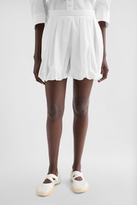 Organic cotton poplin shorts with gathered balloon hem Details - voluminous and short fit - dropped crotch and slightly low waist - side zip closure - side-seam pockets - cotton lining - organic cotton poplin - 100% cotton - made in Italy - StyleID: J02KA0372J45001100 Care - dry clean only - iron with care Fit - model is 177cm/5'9" and is wearing a size 34 DE - Please note that the physical label of the item will show the German size