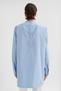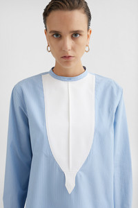 Long-sleeved cotton poplin shirt with front plastron tab detail and embroidered Jil Sander monogram Details - long and relaxed fit - back button closure at neck - stand collar and cuffs - classic plastron detail - embroidered Jil Sander monogram - striped cotton poplin - 100% cotton - made in Italy - StyleID: J05DL0106JTN237471 Care - dry clean only - iron with care Fit - model is 177cm/5'9" and is wearing a size 34 DE - Please note that the physical label of the item will show the German size