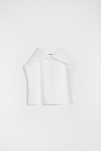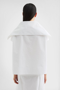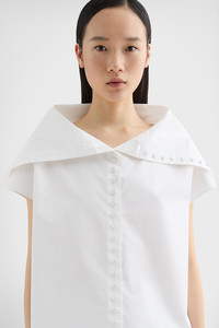 Short-sleeved heavy organic cotton poplin top with folded cape collar and button trims Details - oversized fit and round volume - folded cape collar - centre-front button closure - side slits - heavy organic cotton poplin - 100% cotton - made in Italy - StyleID: J01NC0172J45002100 Care - dry clean only - iron with care Fit - model is 177cm/5'9" and is wearing a size 34 DE - Please note that the physical label of the item will show the German size