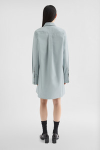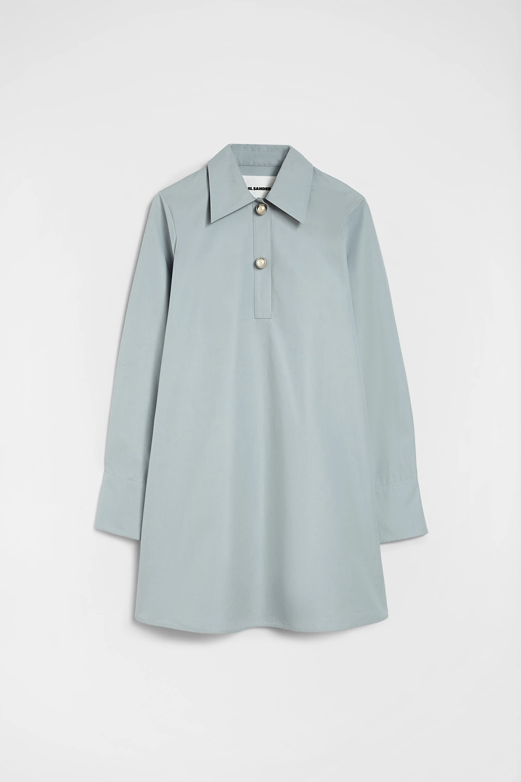 Long-sleeved heavy organic cotton poplin dress with jewel buttons Details - oversized fit and knee-length - dropped shoulders - pointed collar - centre-front button closure with jewel buttons - long sleeves with jewel snap button closure - heavy organic cotton poplin - 100% cotton - made in Italy - StyleID: J02CT0518J45002051 Care - dry clean only - iron with care Fit - model is 177cm/5'9" and is wearing a size 34 DE - Please note that the physical label of the item will show the German size