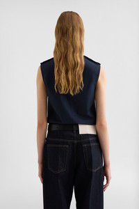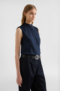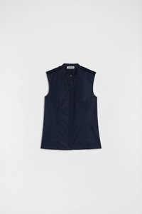 Sleeveless organic cotton poplin top with shoulder ruffles Details - slim fit - stand collar - centre-front closure with concealed buttons - organic cotton poplin - 100% cotton - made in Italy - StyleID: J02DL0276J45001401 Care - dry clean only - iron with care Fit - model is 177cm/5'9" and is wearing a size 34 DE - Please note that the physical label of the item will show the German size