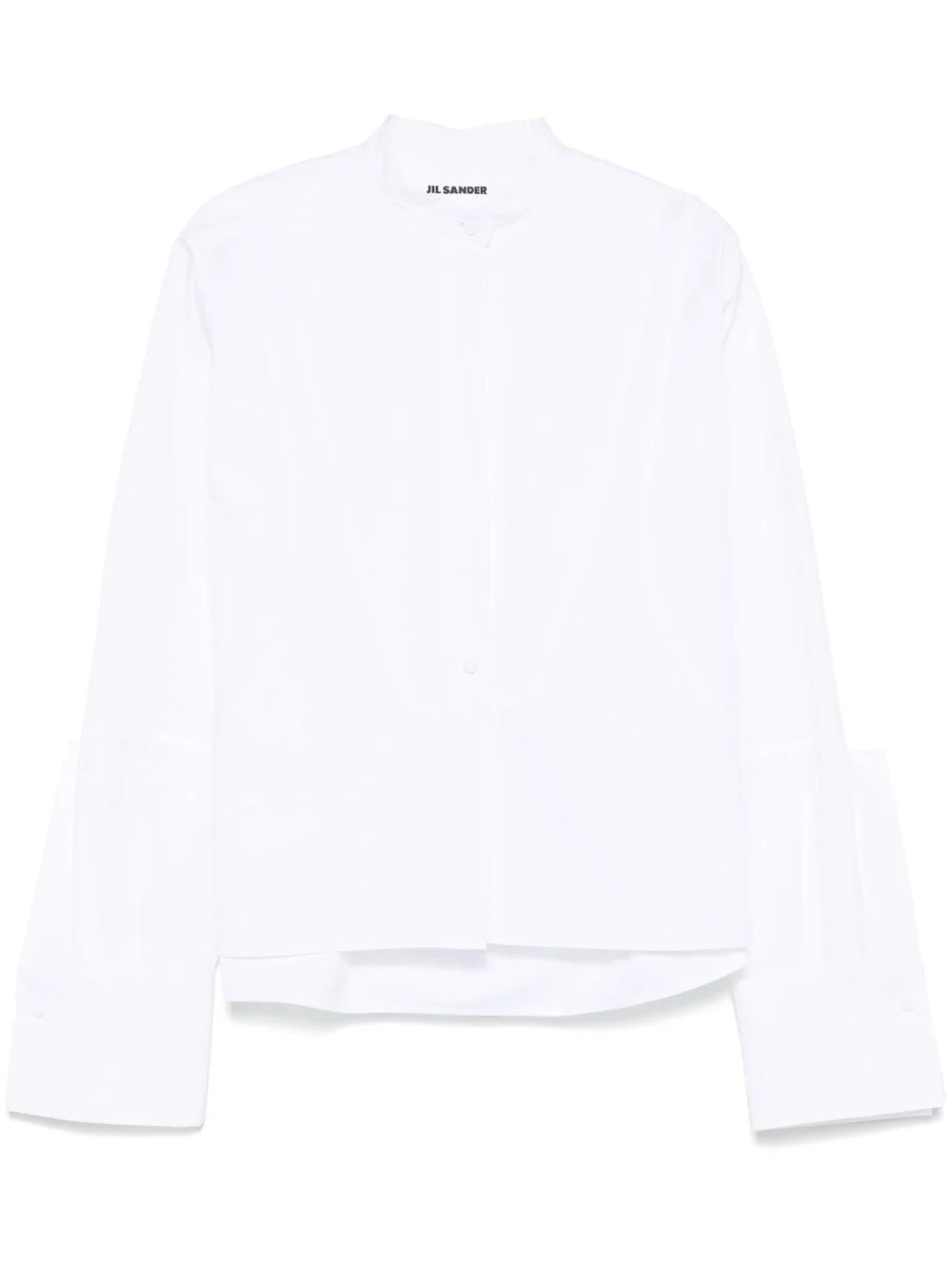 organic-cotton poplin shirt Highlights - White - Front button fastening - French cuffs - Side slits - Box-pleat detail Made in Italy Composition Cotton 100% SIZE & FIT Model measurements Height 5 ft 10 in(1.78 m) Bust/Chest 33.85 in(86 cm) Hips 36.61 in(93 cm) Waist 26.77 in(68 cm) FittingInformation Designed to be unstructured, offering a loose fit throughout Made from a midweight non-stretch fabric