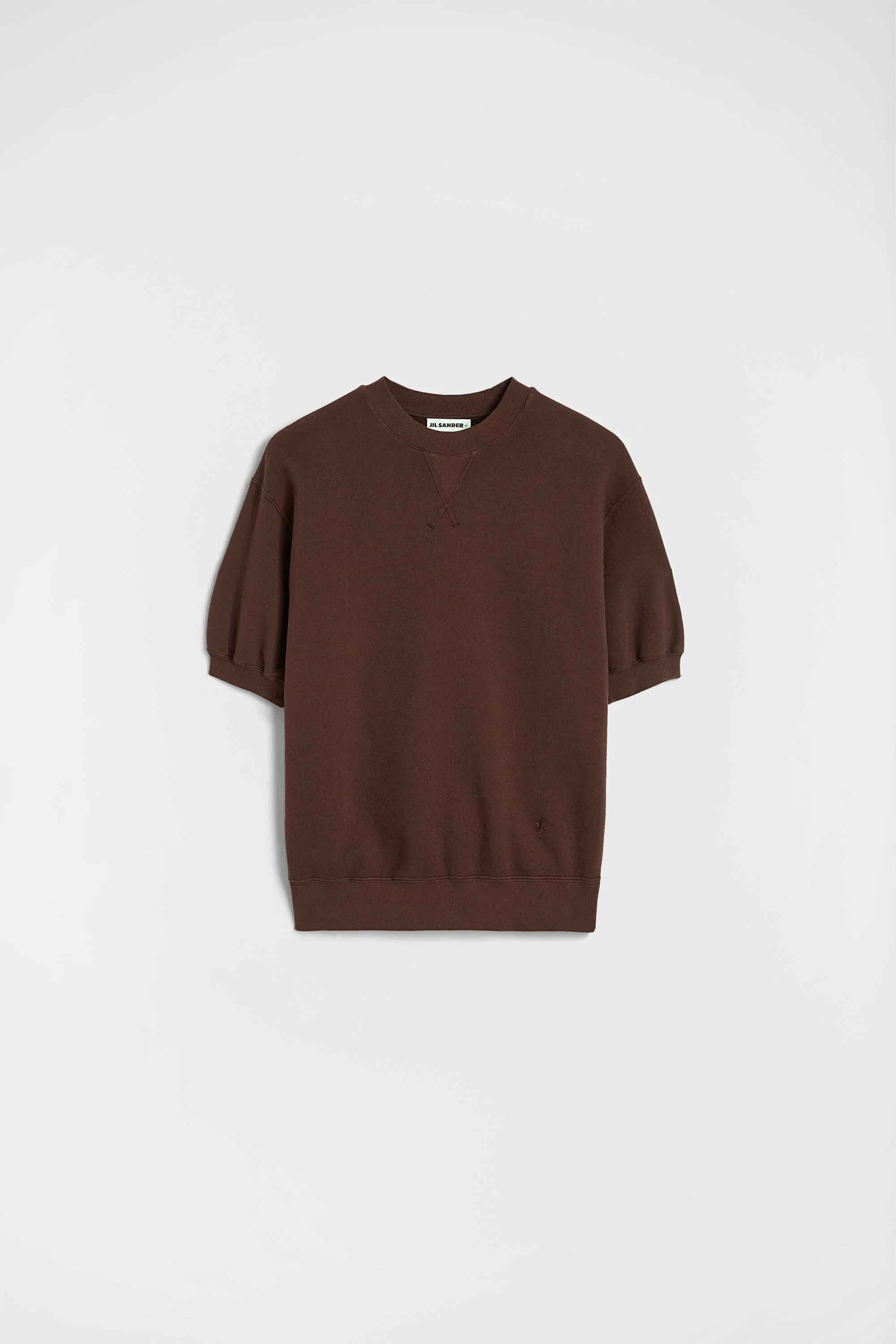 Short-sleeved cotton terry sweatshirt with embroidered Jil Sander+ monogram Details - oversized fit and dropped shoulder - triangle rib detail on shoulder - embroidered Jil Sander+ monogram - compact cotton terry - 100% cotton - made in Italy - StyleID: J40GC0137J20039602 Care - hand wash - iron with care Fit - model is 177cm/5'9" and is wearing a size S - Please note that the physical label of the item will show the international size