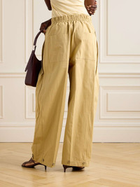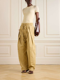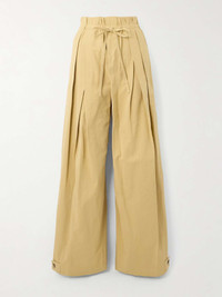 EDITORS'NOTES Jil Sander's pants are made from gently structured twill that's sharply pleated to create texture and enhance the volume of the wide-leg shape. They're topped with adjustable drawstring ties at the basket waist and have tabs at the cuffs. Wear yours with a fitted bodysuit or tucked-in tank. SIZE & FIT Model measurements: - Fits true to size, however those who are between sizes should take the smaller size - Mid-rise, designed for a wide-leg fit - Elasticated at the waist for a comfortable fit - Mid-weight, non-stretchy fabric - Model is 177cm/ 5'10" and is wearing a FR 36 - Bust: 81cm/ 32" - Waist: 62cm/ 24.5" - Hip: 89cm/ 35" DETAILS & CARE - Beige twill - Pull on - 100% cotton - Dry clean